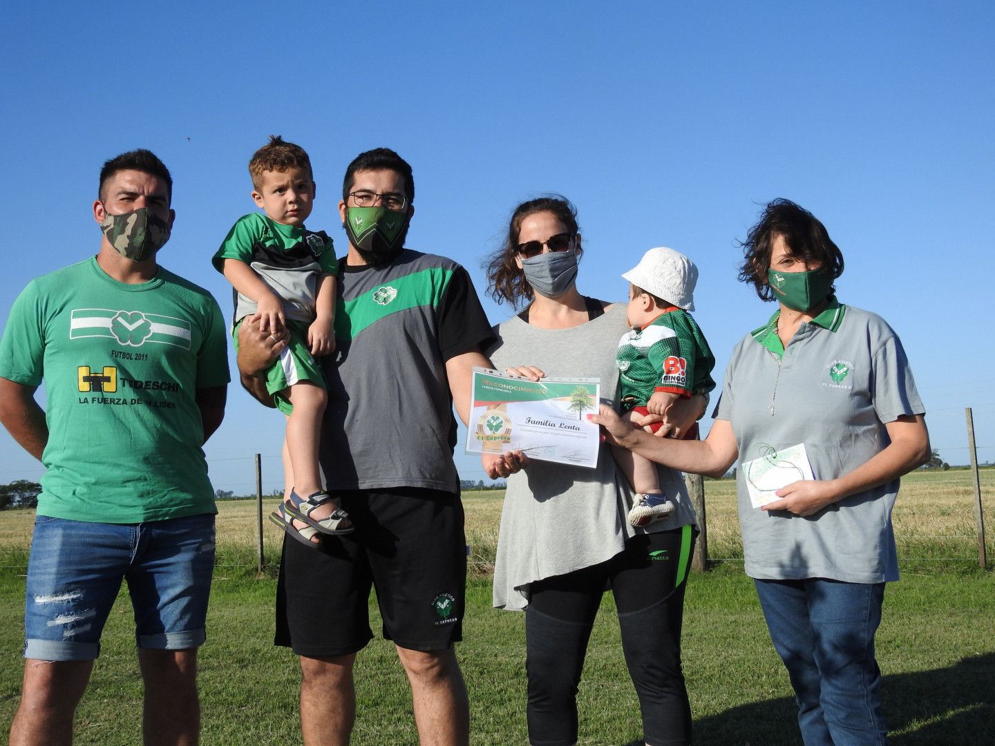 Matías y Jeremías, los hermanos Lenta, junto a la seño de Matías Yamile Abraham y sus peques Benjamín y Santiago se sumaron a la iniciativa del club en el marco del año Centenario.