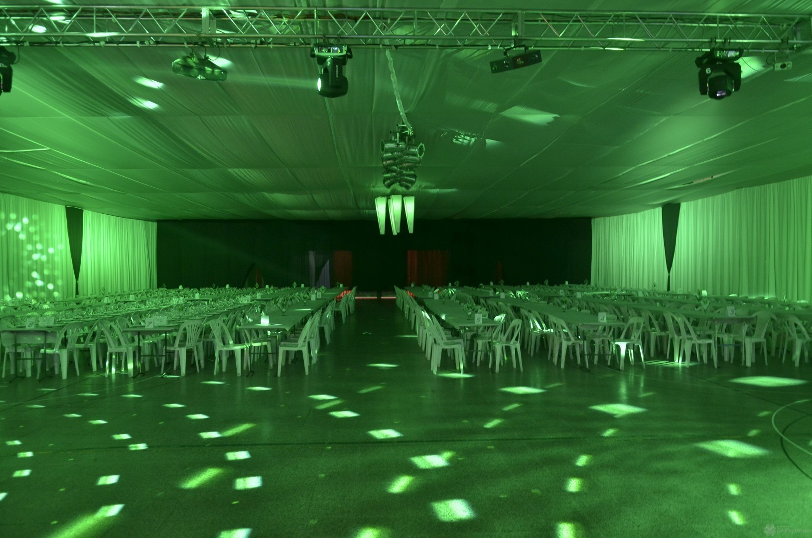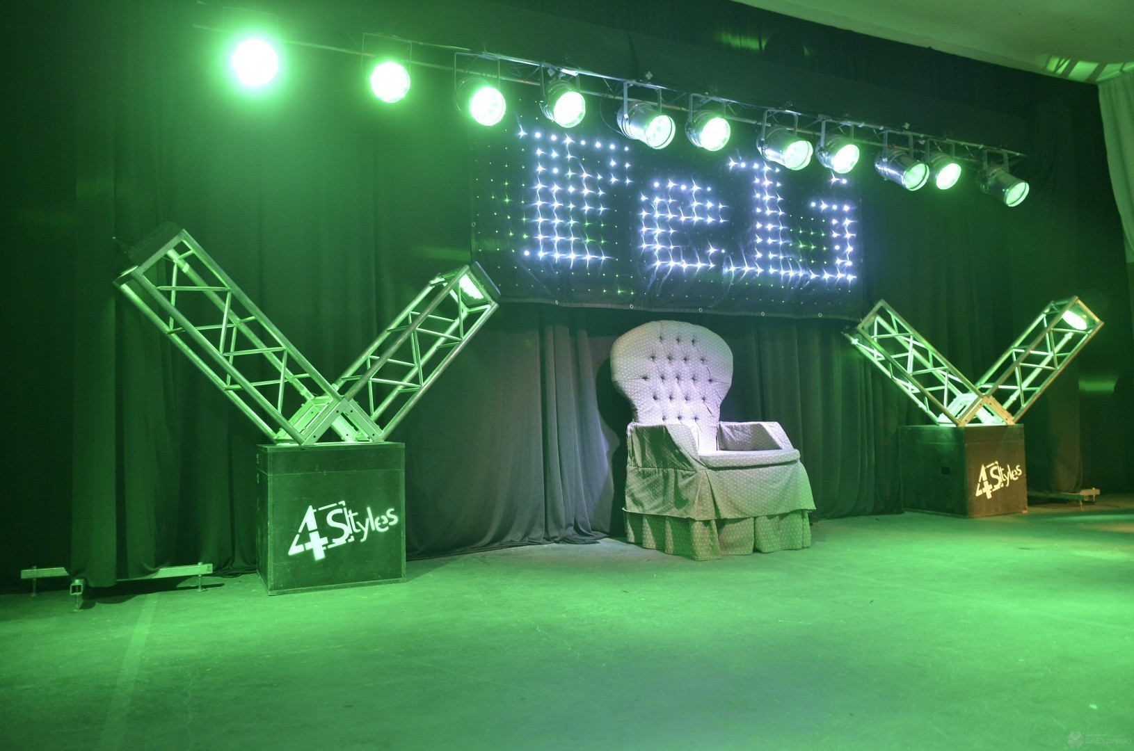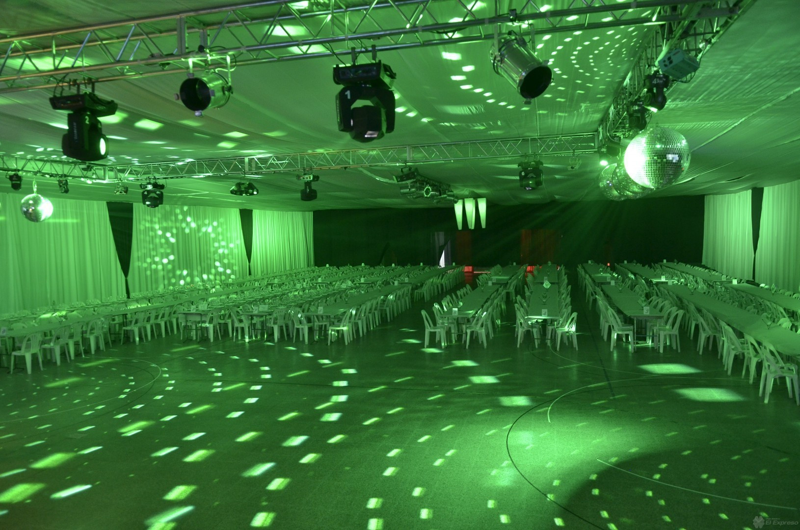 Desde el miércoles a las 7 de la mañana la gente de 4 Styles empezó a entelar en gimnasio de calle Colón para transformarlo en un gran salón de Fiestas y lo lograron.