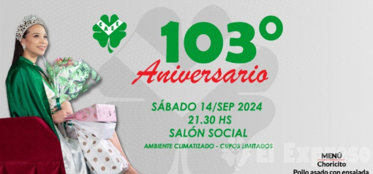 YA ESTAN A LA VENTA LAS TARJETAS PARA LA CENA 103 ANIVERSARIO El festejo de nuestros 103 años será el sábado 14 de setiembre en el Salón Social. Ya están a la venta las tarjetas en la secretaria del club,...