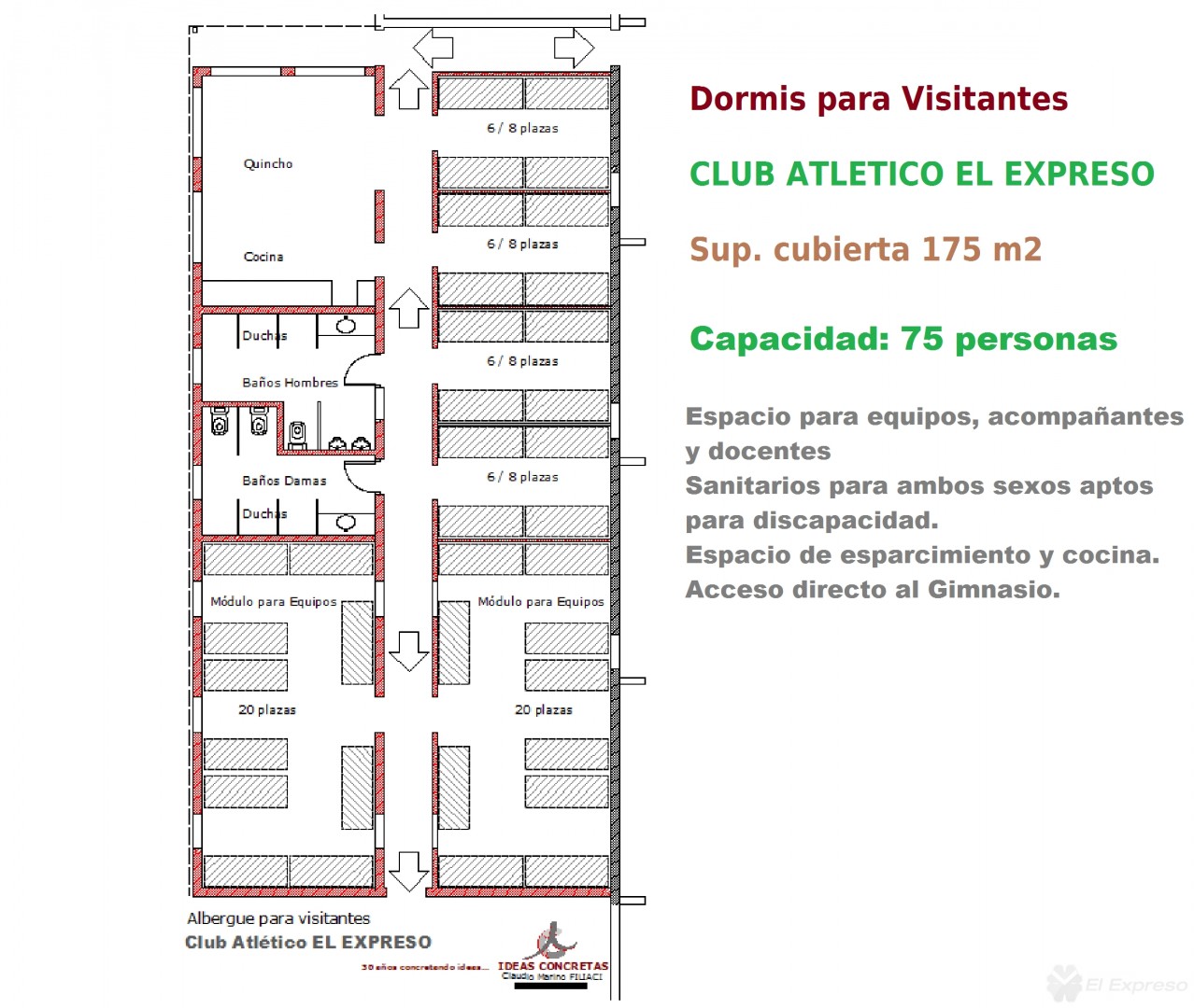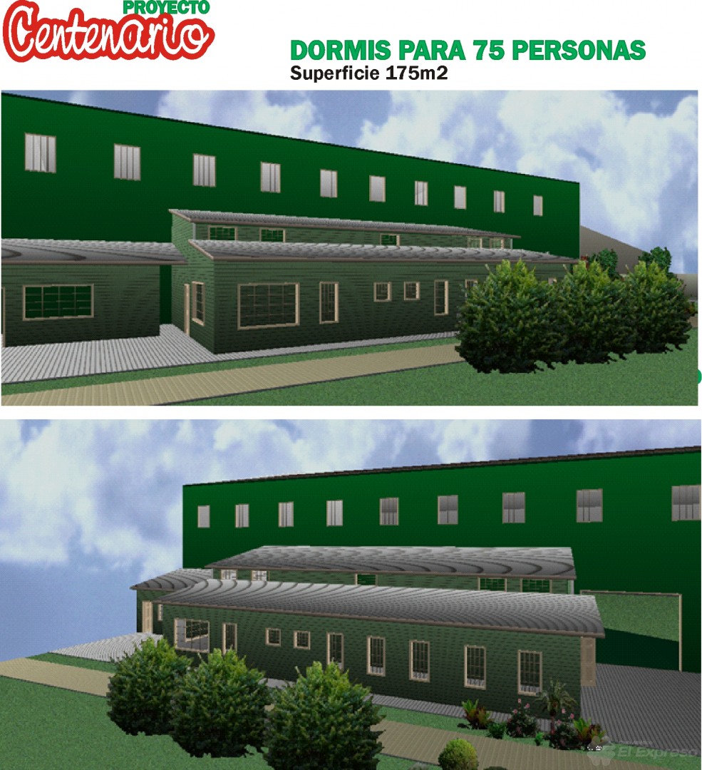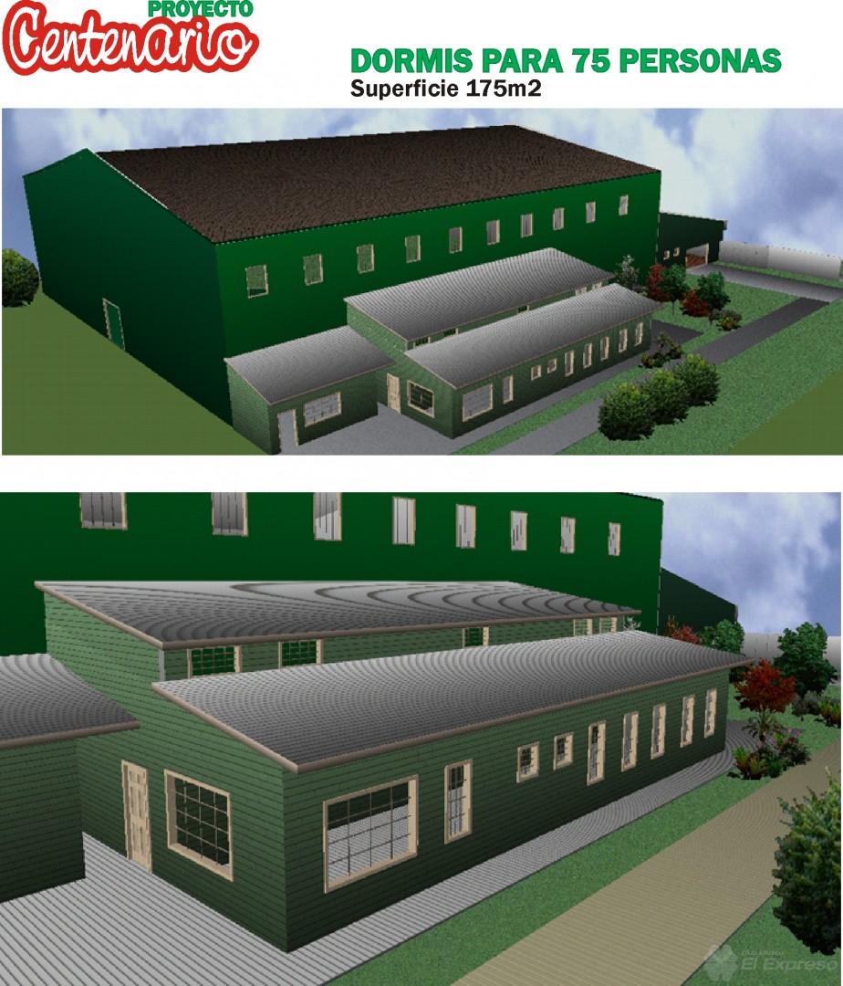 Los Dormis serán para 75 personas y tendrán una superficie cubierta de 175m2, contando con dos espacios amplios para 20 personas (uno para mujeres y otro para hombre) y otros espacios mas pequeños para alojar entre 6 y 8 personas. Además contará con sanitarios, cocina y sala de estar.