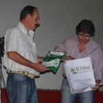 En un momento de la cena se acercó el Director de Desarrollo Cultural de la Municipalidad, Jorge Meynet, quien le hizo entrega al presidente del club, Dr. Gerardo Burga, de la camiseta del club que bendijera el Papa Francisco en momentos que una delegación de El Trébol estuvo en el Vaticano. la misma será enmarcada y quedará entre los objetos mas preciados del club.