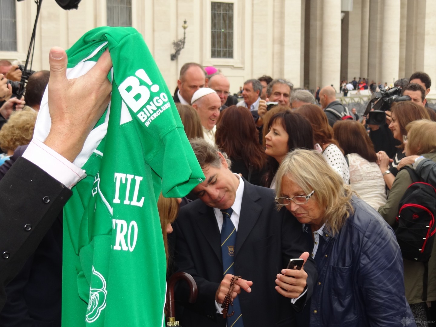 Días atrás una delegación de nuestra ciudad estuvo en la Plaza San Pedro, en el Vaticano, y llevaron la camiseta de nuestro club para que sea bendecida por el Papa Francisco. Por supuesto que el sumo pontífice la bendijo y la camiseta ya está de retorno en nuestro club … solo que ahora bendecida por el sumo pontífice.