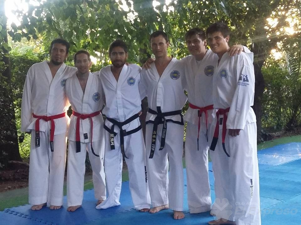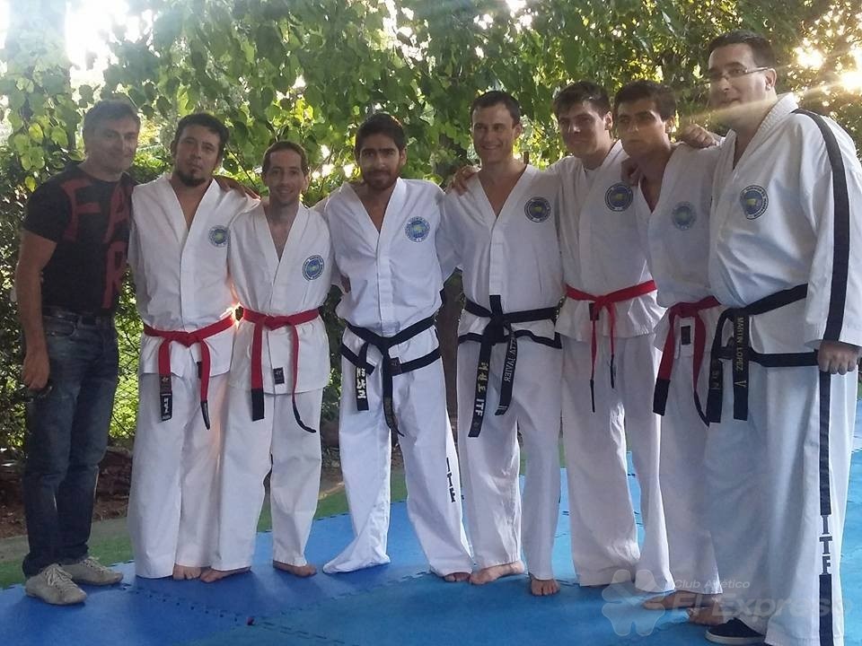 Juan Pérez y Mauricio Mastroiacomo riendieron cinturon negro junto a taekwondistas de toda la provincia.