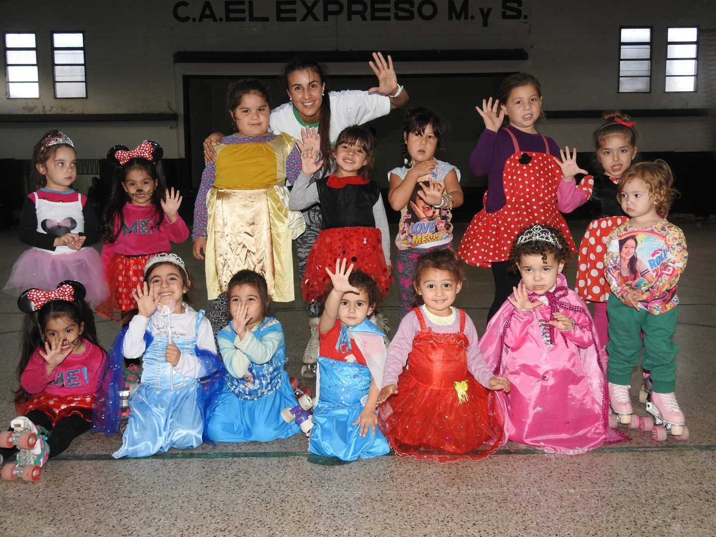 Las niñas felices lucieron sus disfraces y patinaron con ellos.