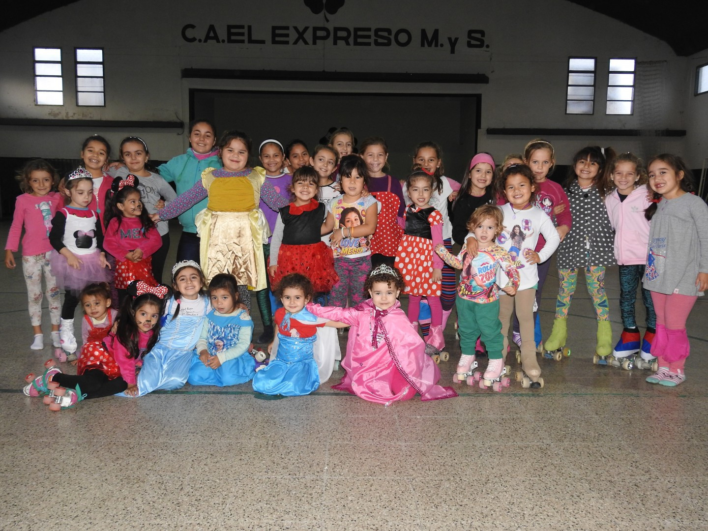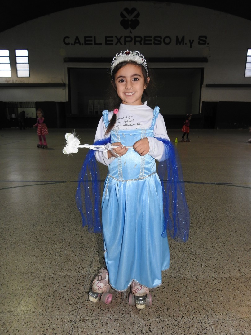Las niñas felices lucieron sus disfraces y patinaron con ellos.