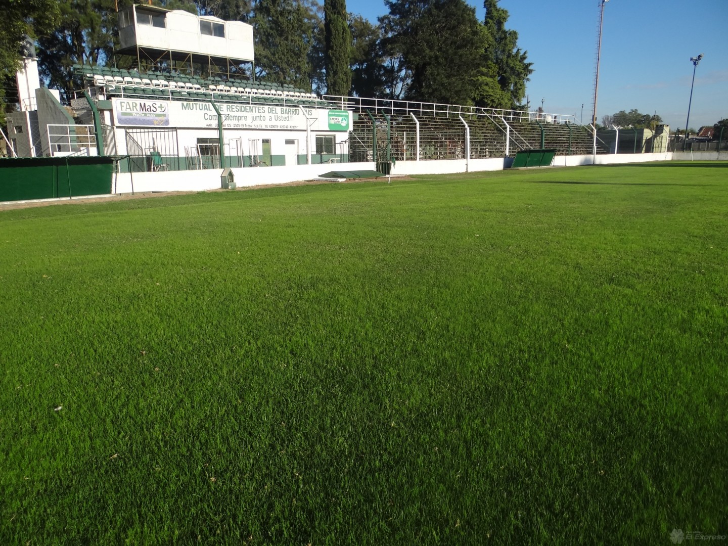 La cancha está impecable, el lunes 13 de este mes fue sembrada con Raigras perenne y tras 10 días luce hermosa.