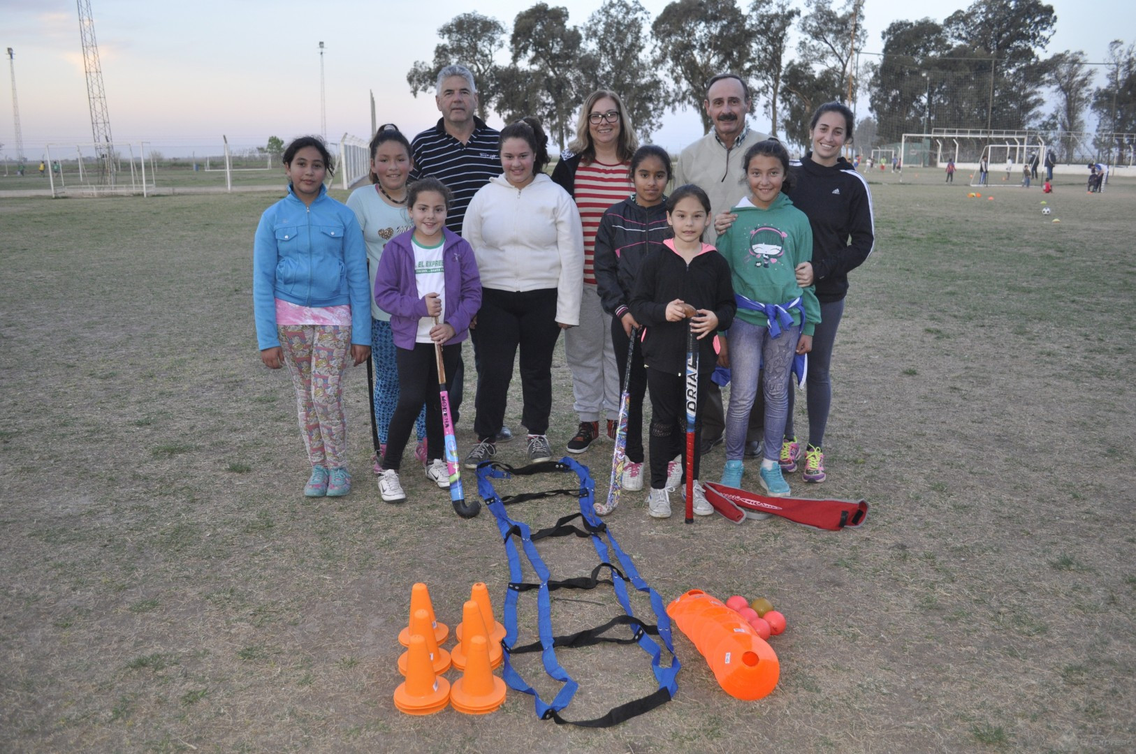 El jueves por la tarde directivos del club pasaron por el campo de deportes y depositaron en manos de la profe de Hockey y sus alumnas, elementos de trabajo que la disciplina estaba necesitando.