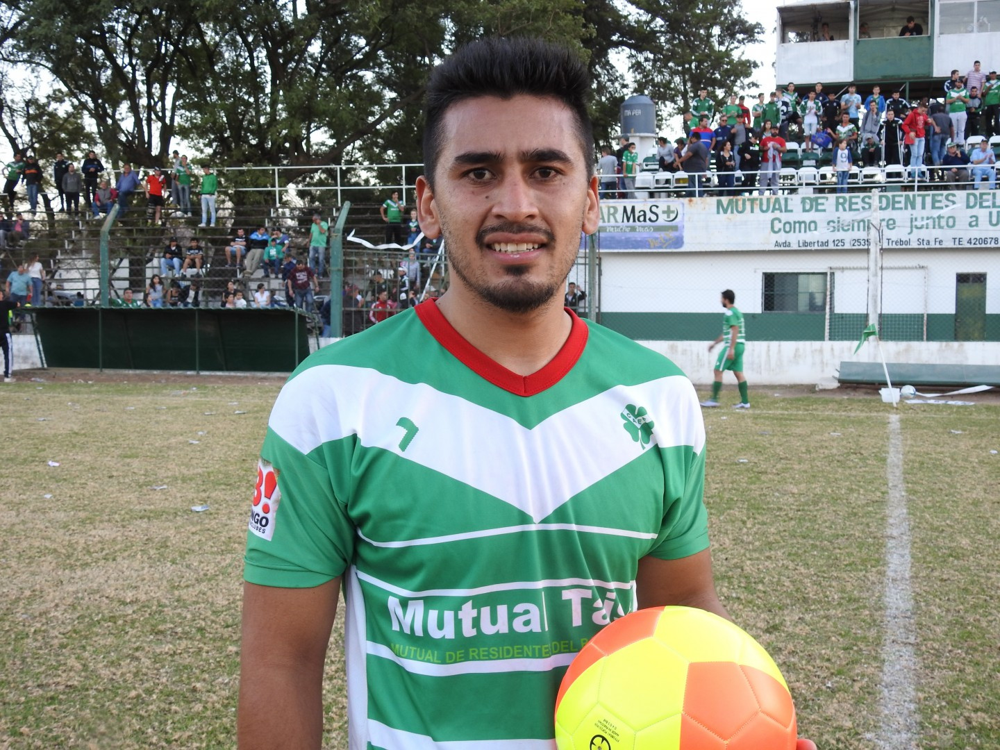 Marcelo recibió la pelota que puso en juego FM 90.5 como el mejor jugador de la cancha: “Acá somos un equipo, una familia los mejores jugadores somos todos. Tengo los viejos que son de fierro, me dan ganas de llorar porque siempre me hacen el aguante; lamentablemente no pudo venir mi nene, pero le dedico el mejor jugador a él “.