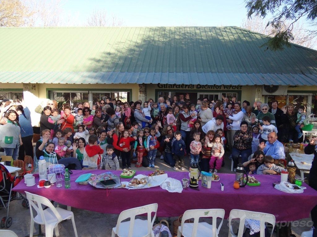 Los niños del turno mañana y turno tarde se reunieron desde las 16.30hs con sus abuelos a compartir un día al aire libre. Muchos de estos abuelos llevan a sus nietos al Jardín pero muchos otros no conocían este lugar y fue idea de las seños convocarlos a todos para compartir un lindo día.