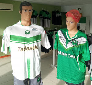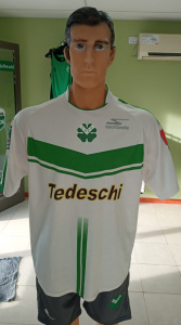 Hoy contamos con una prenda de marca SPORTLANDIA ( una de las más bonitas, de buena calidad en confección y combinación de colores). Cuenta con las publicidades en el pecho de ” Tedeschi ” , en la espalda ” Celotti una familia , una gran empresa ” y en las mangas ” Mutual de Residentes del Barrio Tais ” ” Bingo Interclubes ” . Diseñada en blanco en su mayor parte con la V en verde y dos tiras del mismo color. Está fue utilizada en las campañas de ( 2008-2009 ) y era la alternativa. Nos la prestó muy generosamente Jorge Belleti.